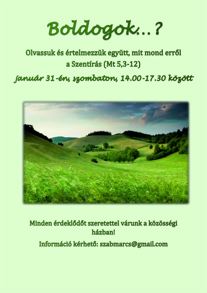 3./ A páros hetek csütörtökjein, mint e héten is, este ¾ 7-től másfélórás bibliaórák vannak a közházban. Ugyanott 31-én, szombaton du. 14 és 17.30 között nyílt napot tart a bibliakör a nyolc boldogságról minden korosztály érdeklődésére számítva.